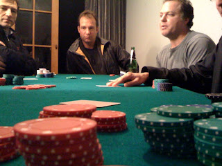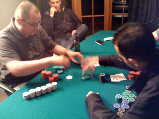 There were plenty of chips on the table tonight with the lead moving around a few times. Still seven seats full until late in the game when the "Poker Barron" calls "J-Rod" all in and gets shafted.