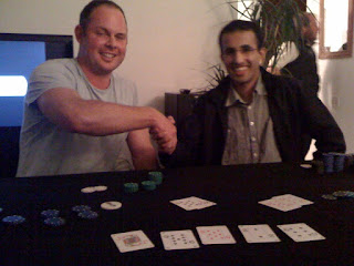 J-rod needed Scuzzie to beat Glass Jaw to take the win ... but he could not help him-self. He makes short work of Scuzzie pinning pocket 10's against Scuzzies 10 9 - playing of his now short stack, Suzzie is out.